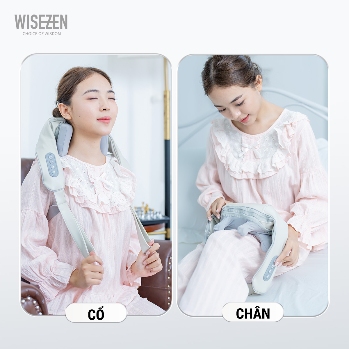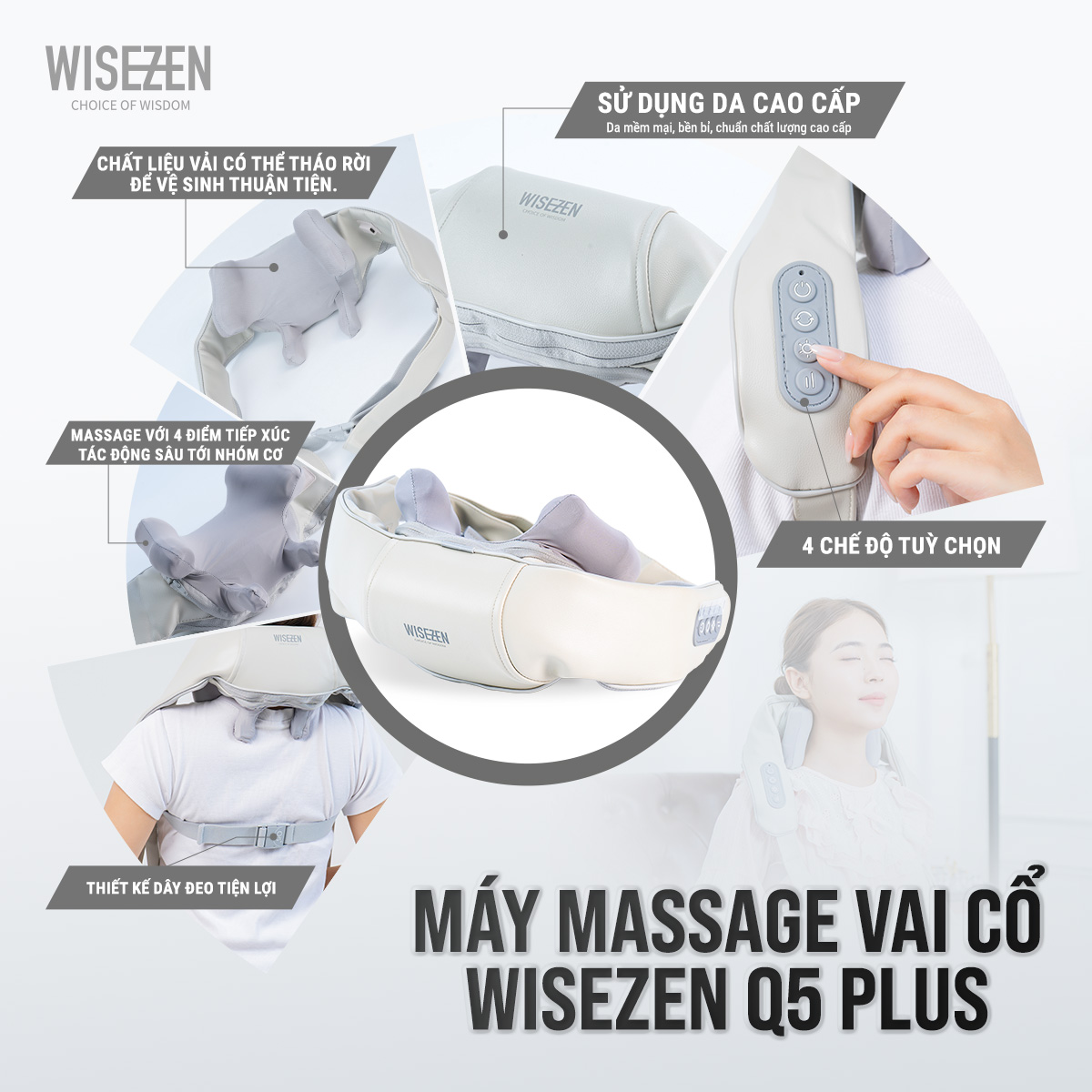 Máy massage cổ vai gáy 6D Wisezen Q5 plus cầm tay CÓ ĐÈN HỒNG NGOẠI Kỹ Thuật Massage Số 8 Massage Chườm Ấm Cổ Vai Gáy