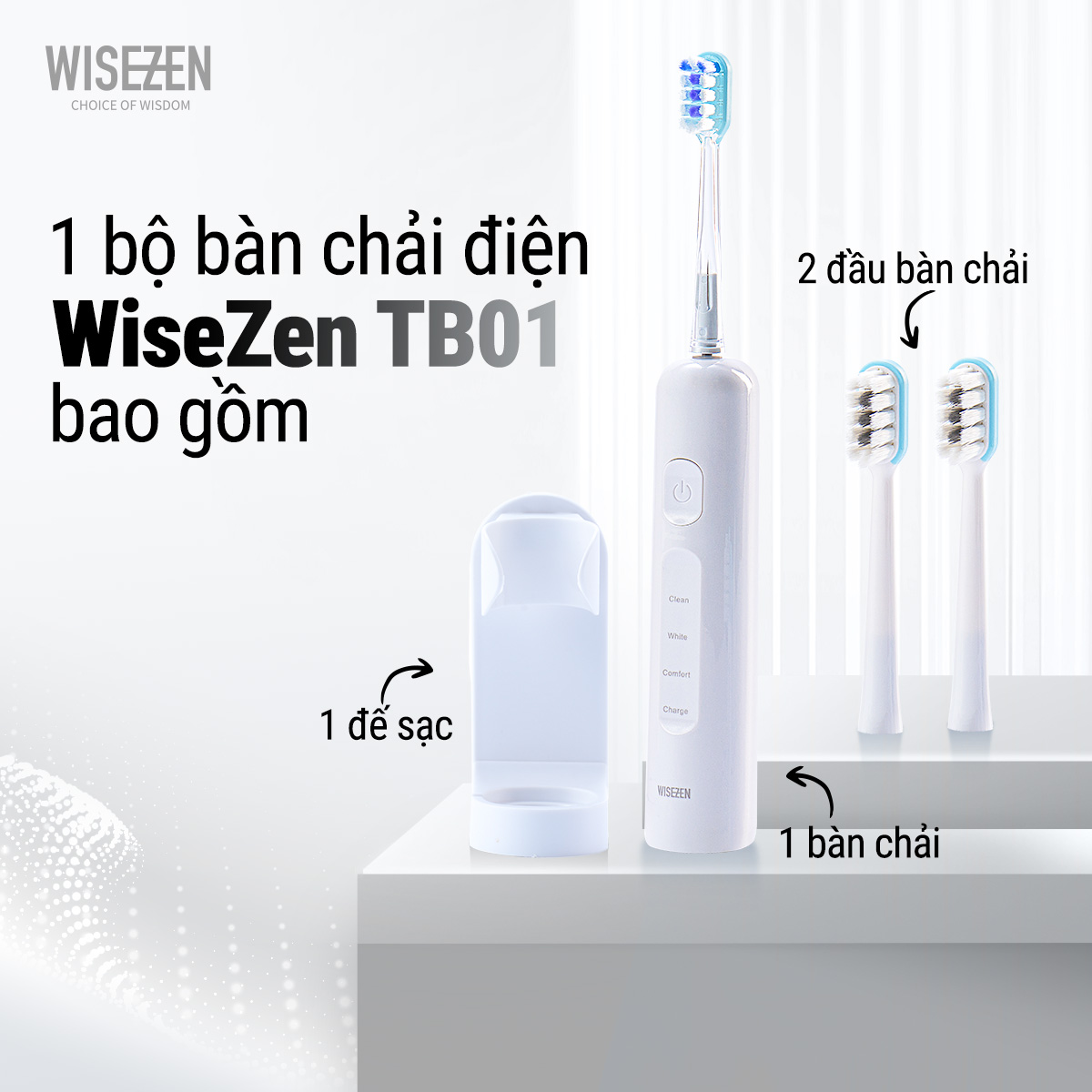 - Tặng kèm 3 đầu bàn chải vô trùng hút chân không – Vệ sinh, mở ra là dùng ngay
