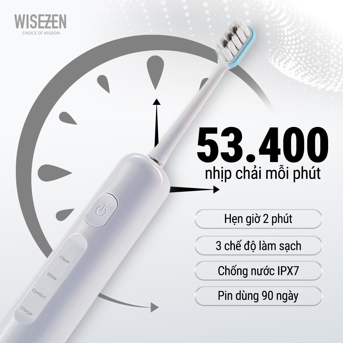 - 3 chế độ làm sạch – Phù hợp với các nhu cầu chăm sóc răng miệng khác nhau